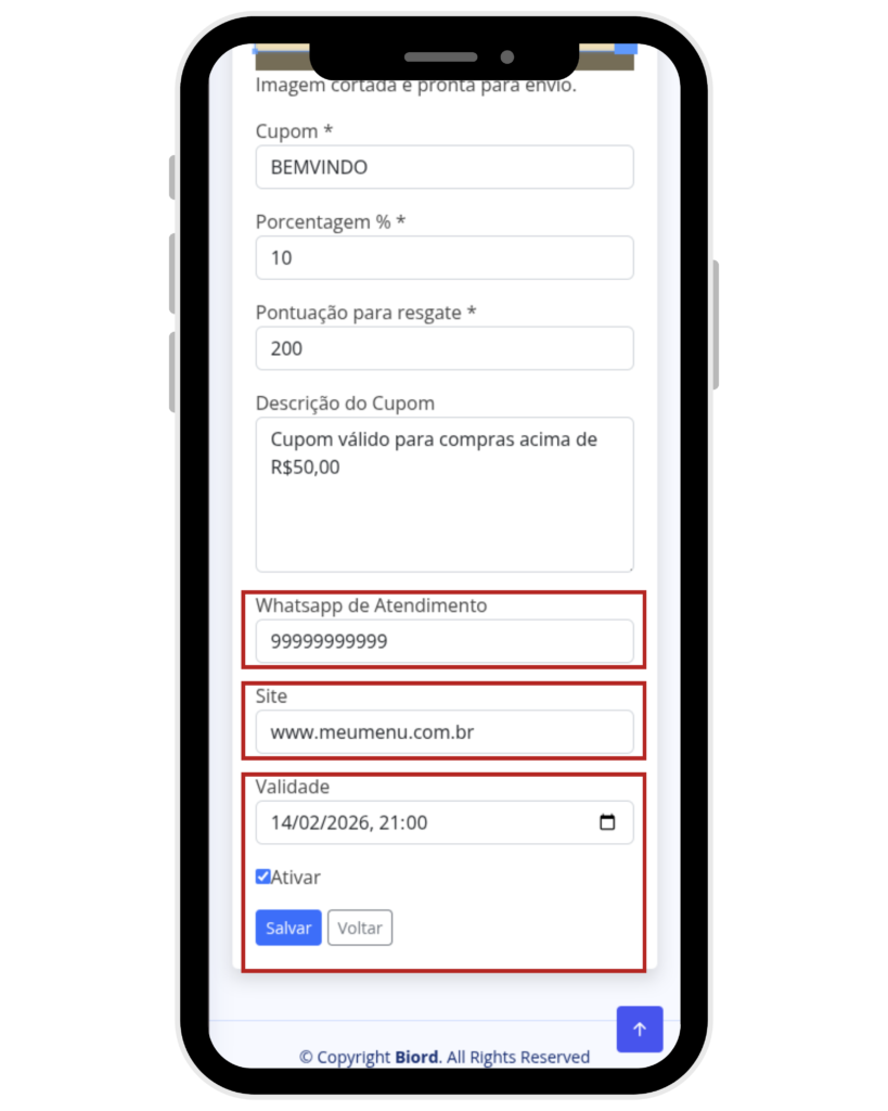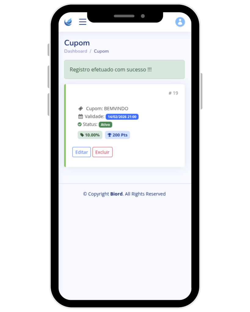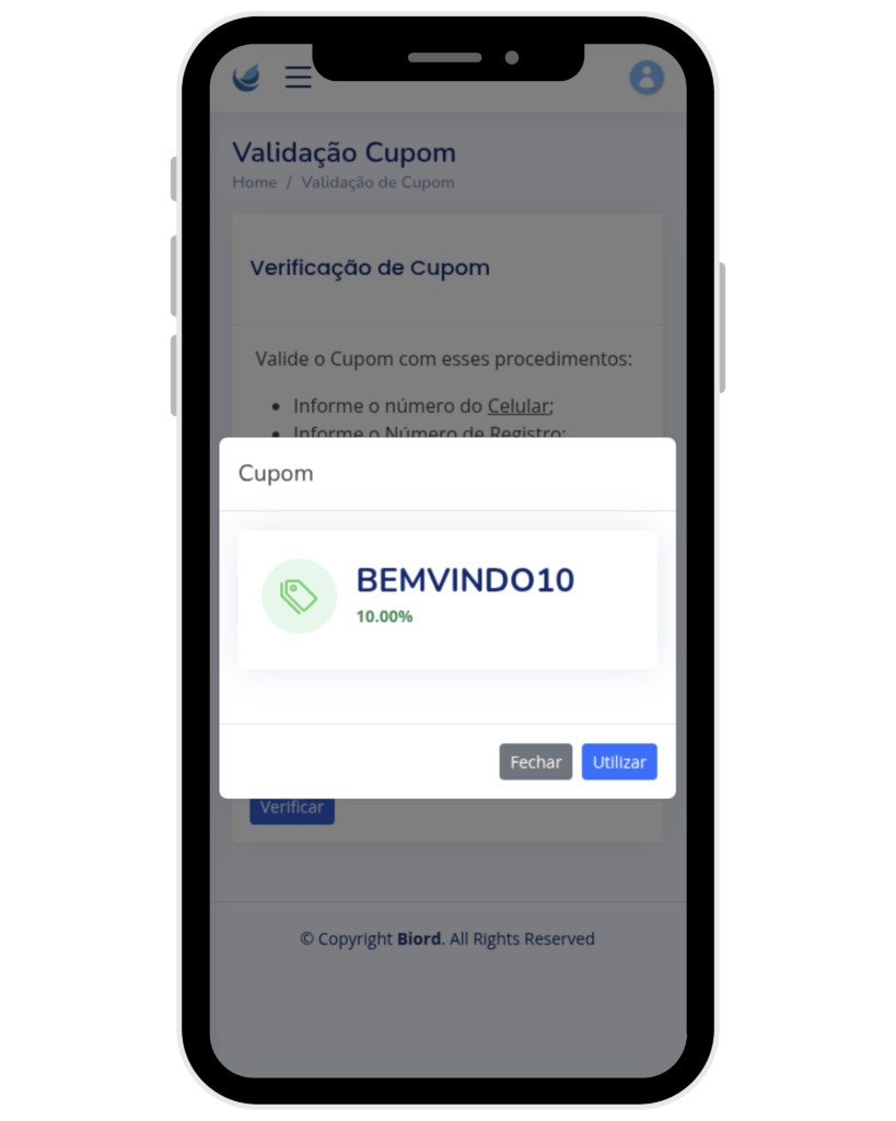 Crie cupons de desconto dentro da plataforma Biord para atrair novos clientes.